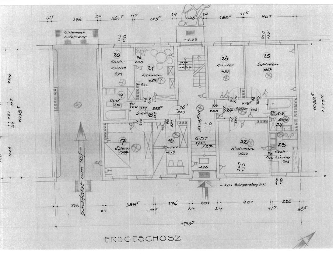 Lediglich die Wohnung im I. OG rechts wird elektrisch beheizt und mit Warmwasser versorgt und die Wohnung im I. OG Mitte, verfügt über eine alte Gasheizung und separate Warmwasserbereitung.