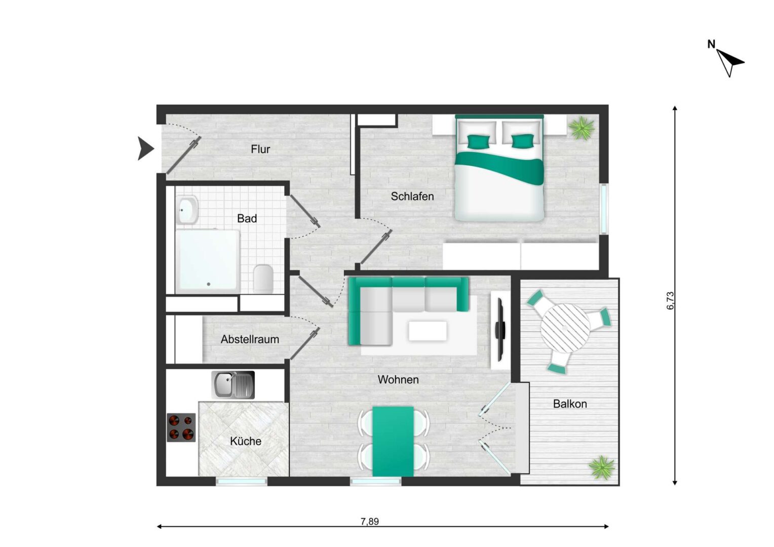 Ein Balkon bietet zusätzlichen Wohnkomfort im Freien. Ein eigener Kellerraum sowie ein zugeordneter Außenstellplatz für einen zusätzlichen Kaufpreis in Höhe von 20.000,00 € gehören ebenfalls zur Wohnung. Sie ist bequem per Aufzug erreichbar und eignet sich ideal sowohl zur Eigennutzung als auch als werthaltige Kapitalanlage.