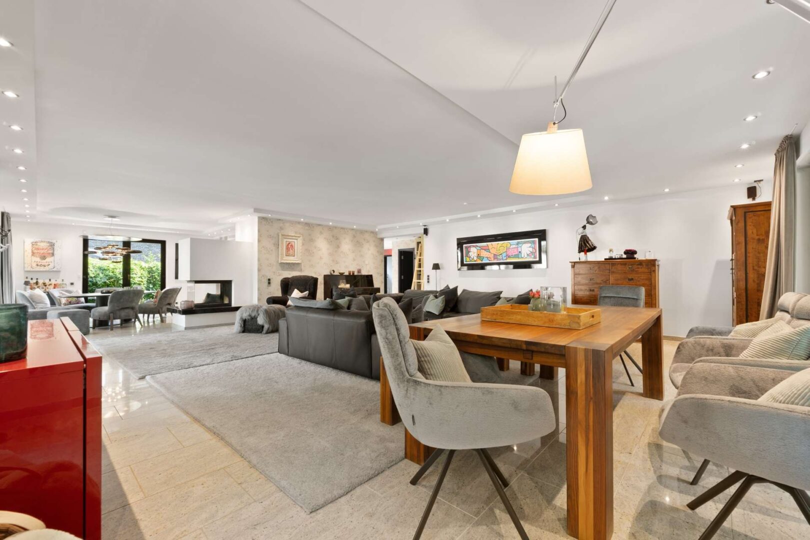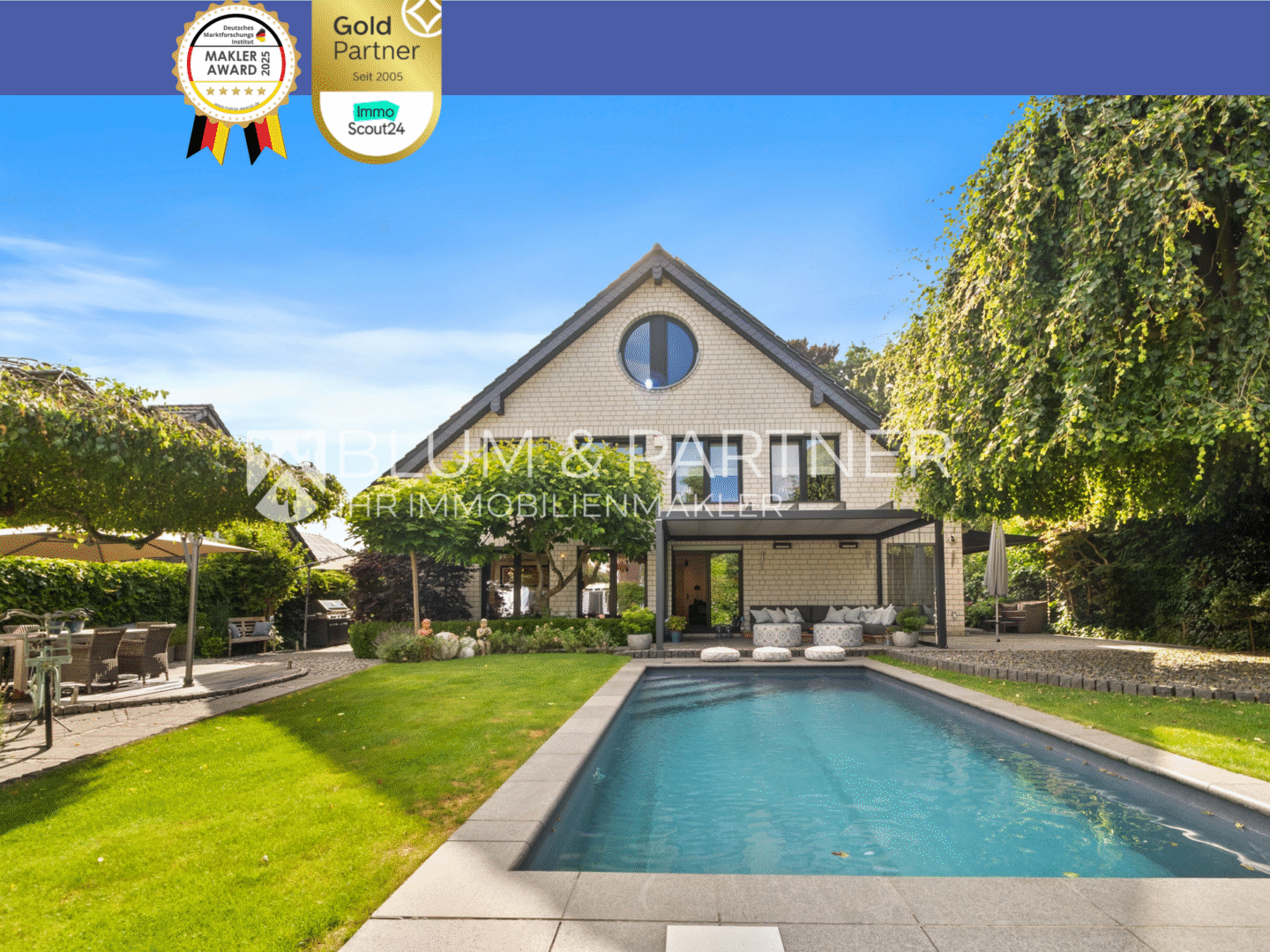 Es handelt sich um ein in Kaarst gelegenes exklusives freistehendes Einfamilienhaus mit 469,00 m² Wohnfläche auf einem 755,00 m² großen Grundstück. Das Grundstück umfasst neben der Immobilie einen in 2019 errichteten und durch Wärmepumpe beheizten Außenpool sowie eine PKW-Garage mit drei weiteren PKW-Stellplätzen. Aufwendige Gartengestaltung mit mehreren Terrassenanlagen sowie einen Wintergarten runden das Grundstück ab.