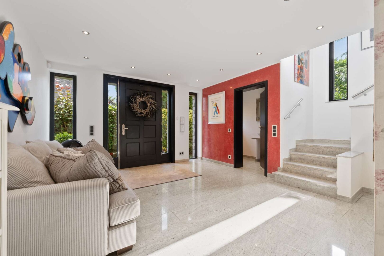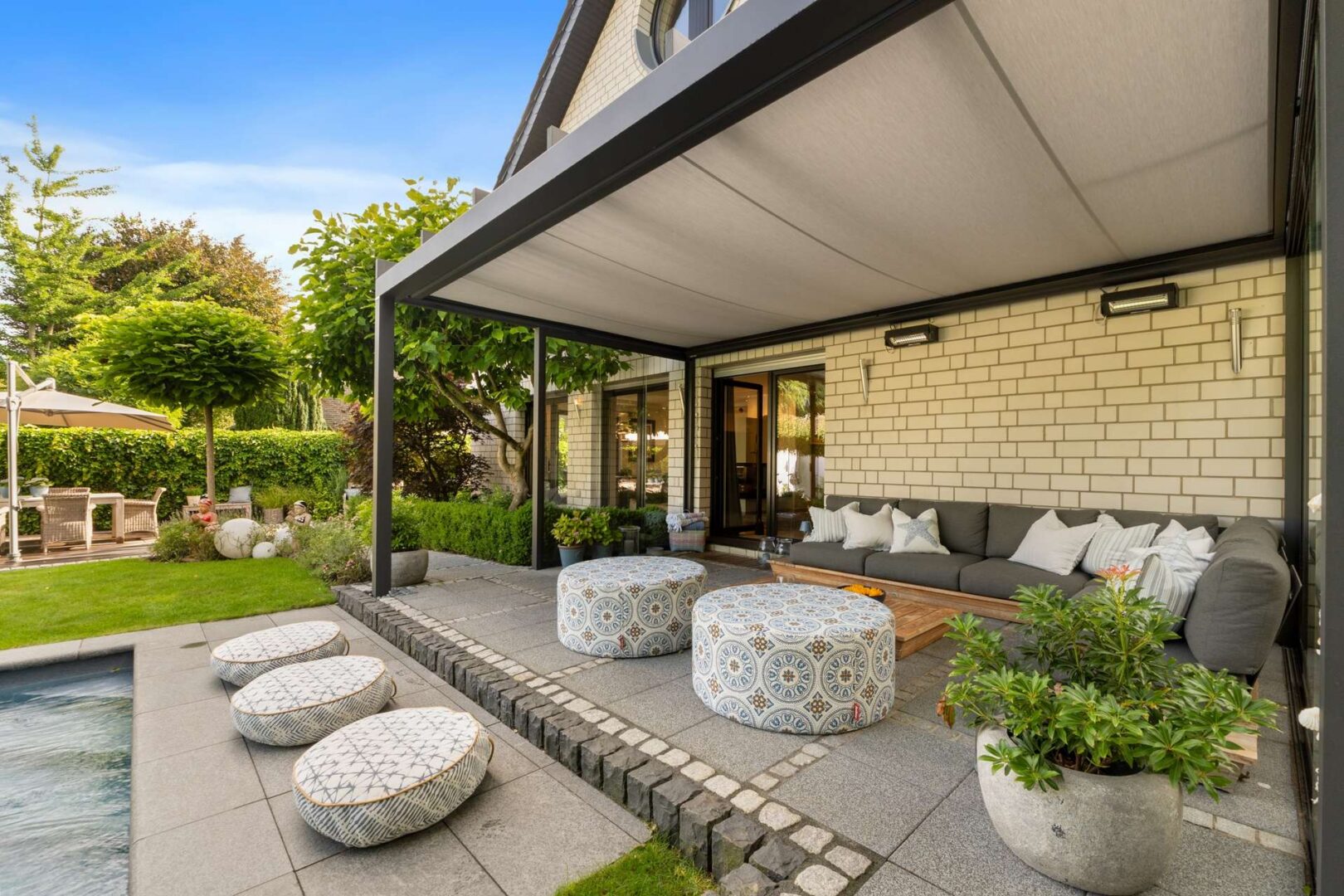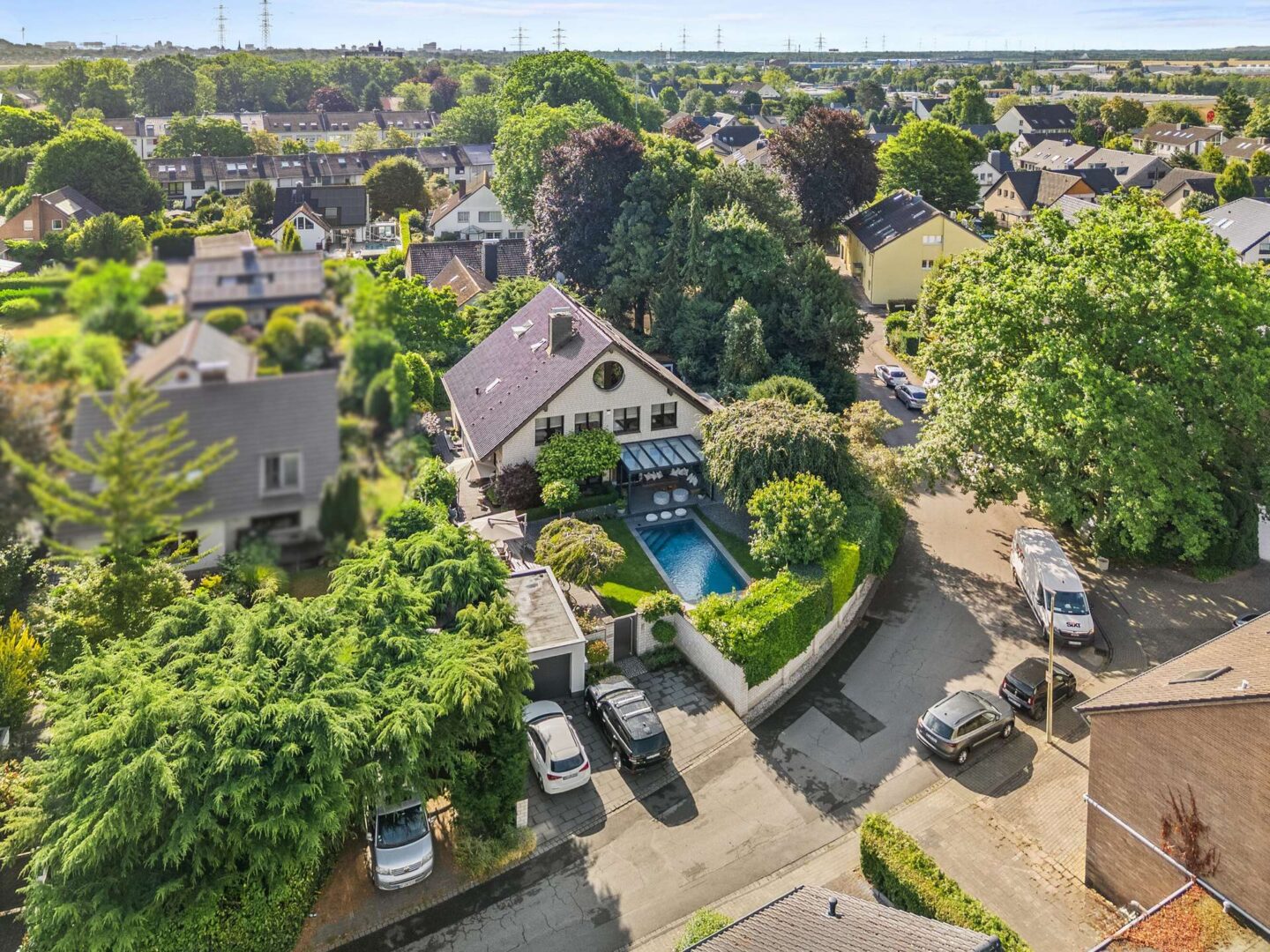Es handelt sich um ein in Kaarst gelegenes exklusives freistehendes Einfamilienhaus mit 469,00 m² Wohnfläche auf einem 755,00 m² großen Grundstück. Das Grundstück umfasst neben der Immobilie einen in 2019 errichteten und durch Wärmepumpe beheizten Außenpool sowie eine PKW-Garage mit drei weiteren PKW-Stellplätzen. Aufwendige Gartengestaltung mit mehreren Terrassenanlagen sowie einen Wintergarten runden das Grundstück ab.