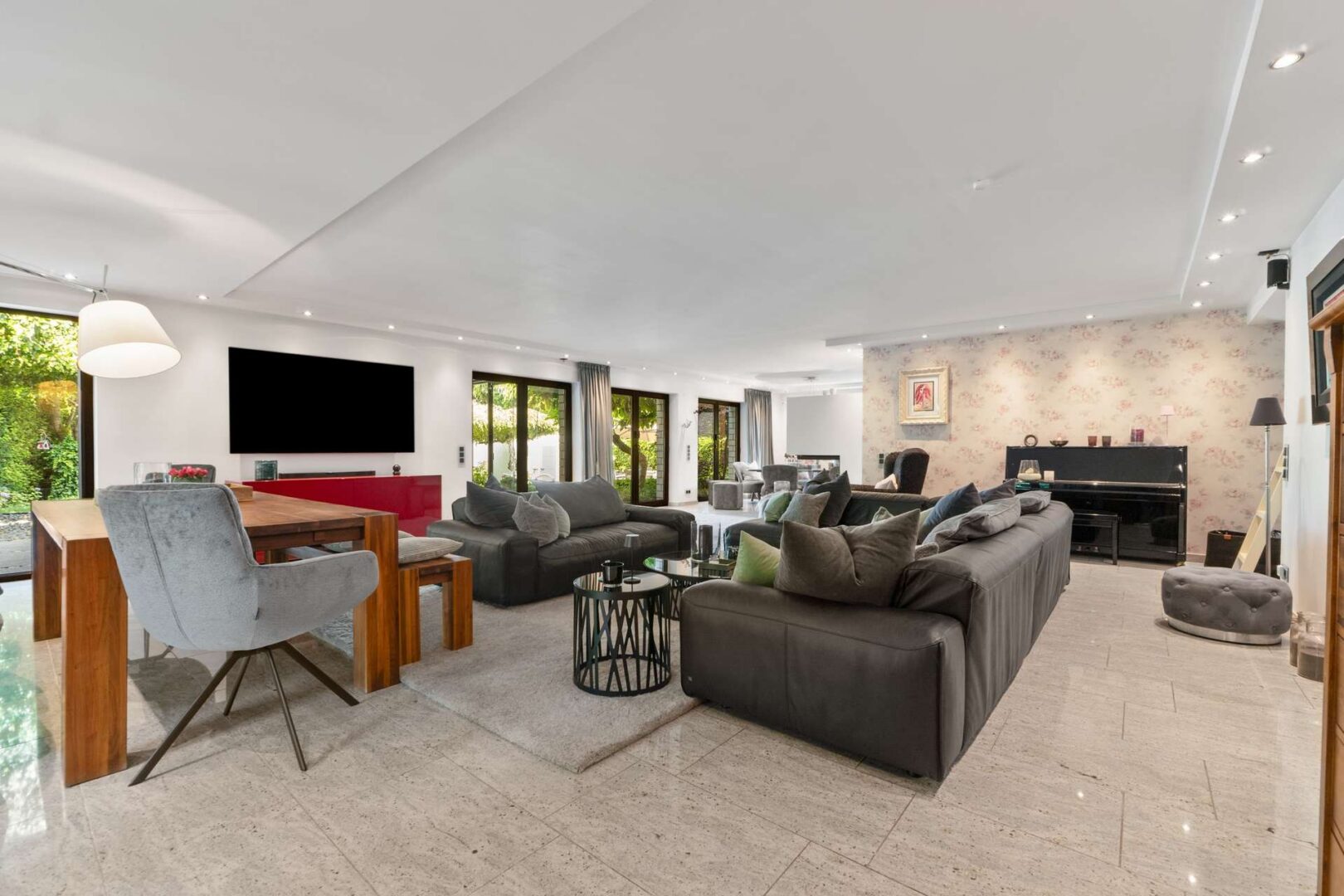 Die Liegenschaft umfasst das Erdgeschoss, das Obergeschoss, sowie ein Galeriegeschoss und bietet auf allen drei Etagen insgesamt über 469,00 m² Wohnfläche sowie einen separaten Anbau, welcher über einen eigenen Eingang als Einliegerwohnung genutzt werden kann. Das Haus ist fast vollständig unterkellert und verfügt über eine neuwertige Sauna, einen großflächigen Mehrzweckraum, welcher als Fitnessstudio genutzt wird, jedoch auch zu Wohnzwecken oder als Büro dienen kann. Die restlichen Kellerräume sind ein Weinkeller sowie Abstell-, Vorrats-, Wirtschafts- und Technikräume.