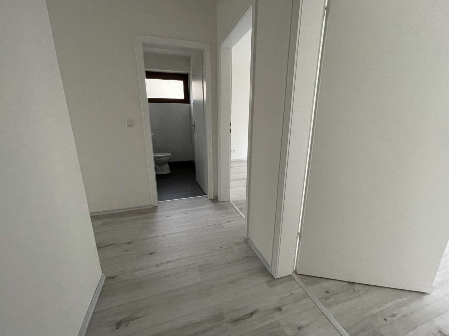 Die frisch renovierte Wohnung umfasst drei helle Zimmer, eine Küche, Diele, Wannenbad/WC, Gäste WC und einen Balkon. Die Übergabe erfolgt in einem renoviertem Zustand. Das Badezimmer, sowie die Küche, ist mit einem modernem schwarzen Fliesenboden versehen, alle andere Zimmer sind mit einem neuen Vinylboden ausgestattet. Außerdem bietet ein Kellerraum zusätzlichen Stauraum.