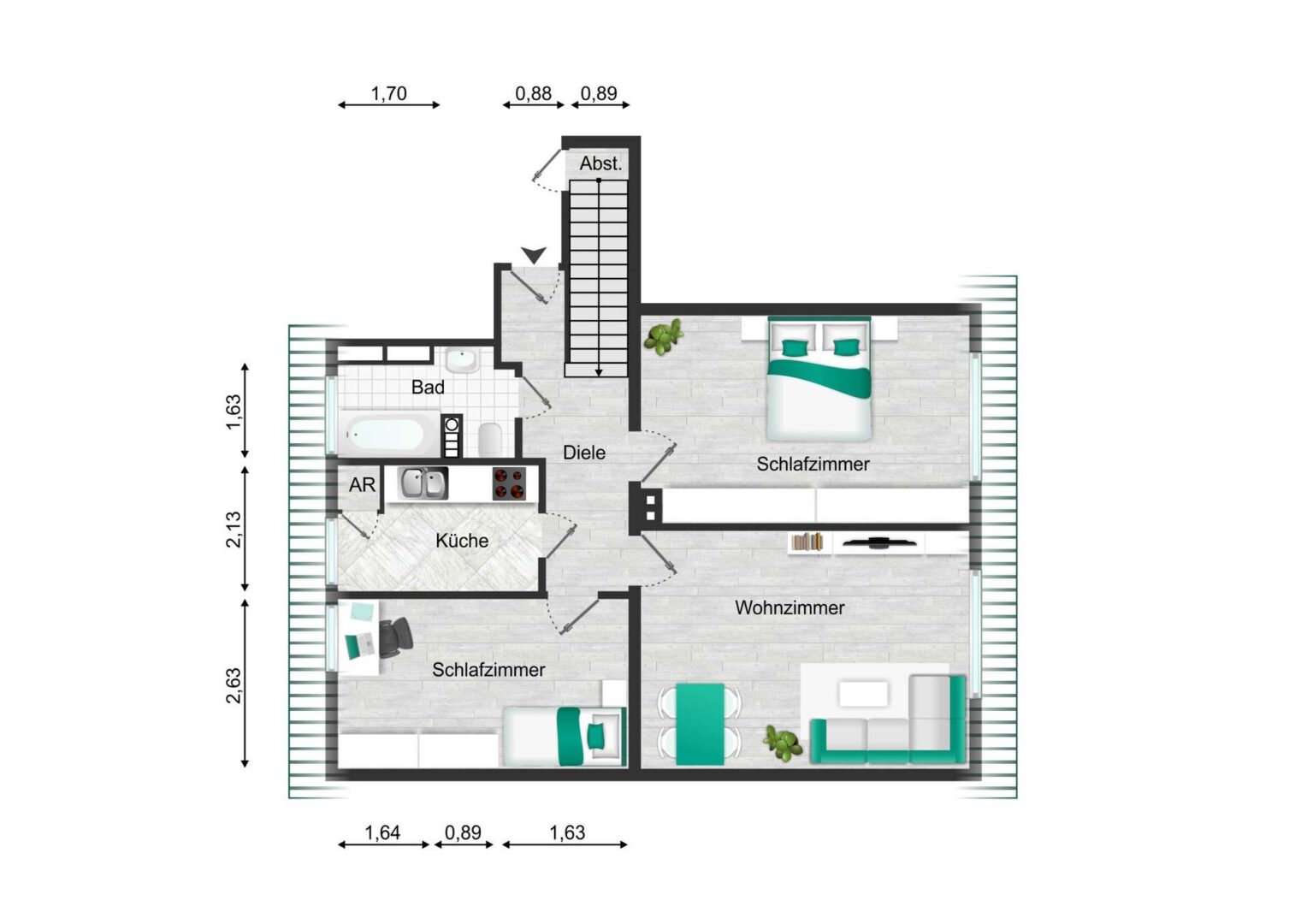 Bei dieser Wohnung handelt es sich um eine frisch renovierte 3-Zimmer-Dachgeschosswohnung in Köln-Buchheim mit ca. 69 m² Wohnfläche. Sie verfügt über drei gut geschnittene Zimmer, eine Diele, eine separate Küche, ein Wannenbad mit WC und Fenster sowie eine praktische Abstellkammer - ideal für Singles und Paare, die helles und modernes Wohnen in ruhiger Lage schätzen.